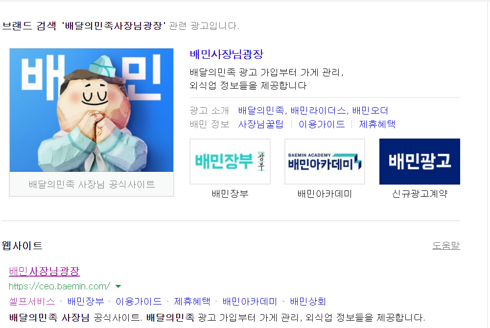 네이버 --> 배민사장님광장 이렇게 치시만 아래 화면처럼 나오고 있습니다.