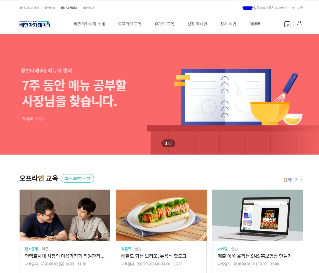 물론 다른 요기요등 기타 서비스도 비슷한 교육등이 있는데 아직까지는 배민아카데미가 가장 좋은것 같습니다.