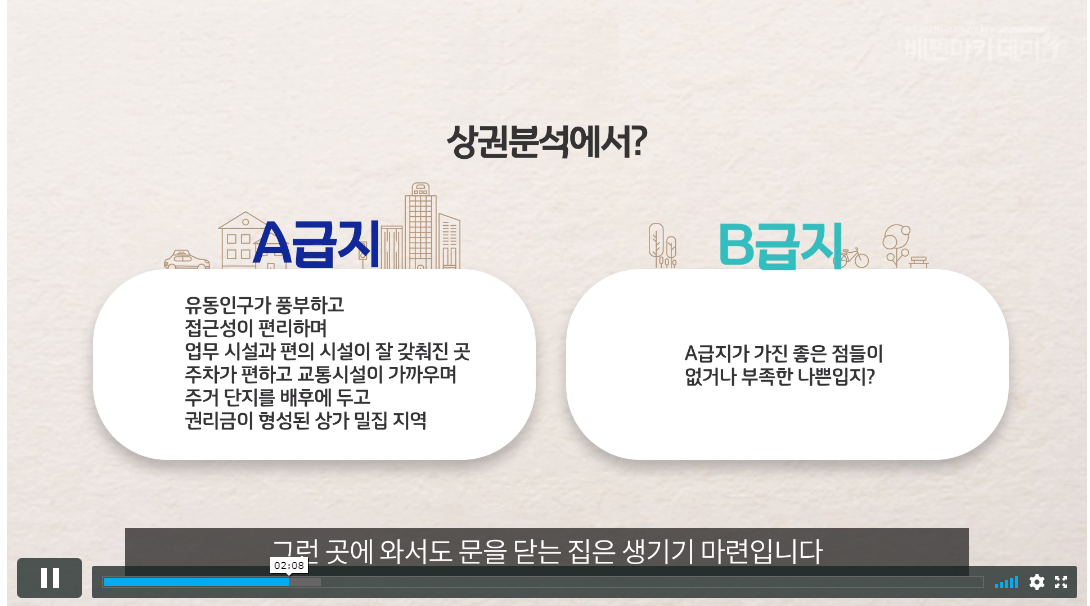 예로 "온라인 교육" 중 카테고리에 있는 A급 상권과 B급 상권을 어떻게 구분하는가? 의 동영상 교육등을 보면 상권에 대한 공부를 할수 있고요^^